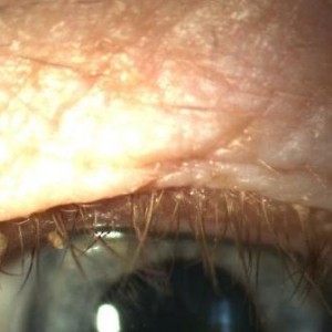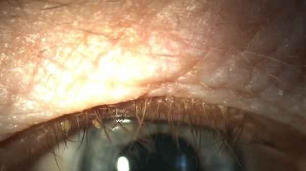 verkrustetes Sekret in den Wimpernverkrustetes Sekret in den Cilien